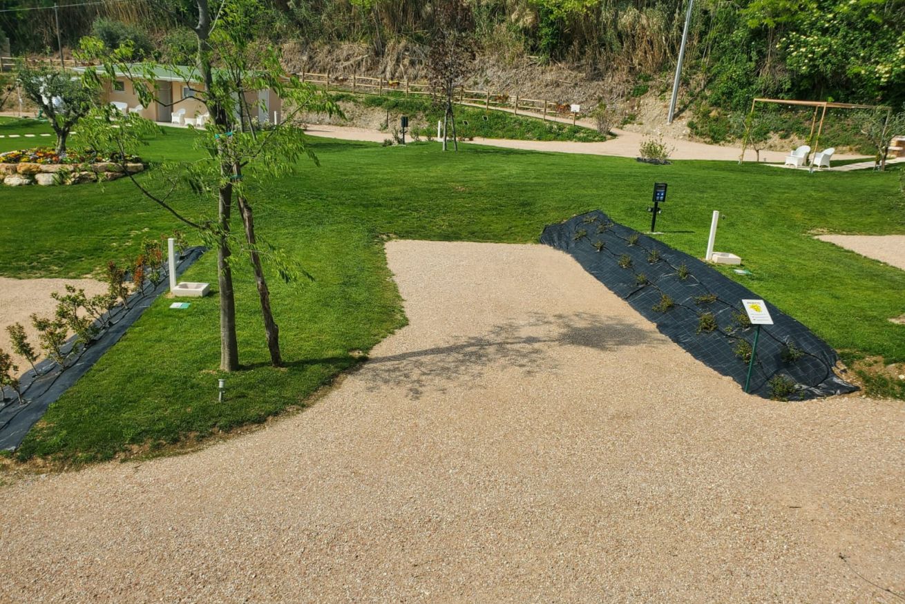 Piazzola da 120 mq, è formata da 50% ghiaia e 50% green unendosi con il verde del parco.